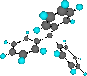 Die räumliche Anordnung dieses Moleküls ist interessant. Betrachtet man die sechs ortho-ständigen Wasserstoffatome, erkennt man, dass eine planare Anordnung der Phenylreste nicht möglich ist, da die Wasserstoffatome sich sonst störten. Die Benzolringe werden aus der Ebene herausgedreht und das Molekül nimmt eine propellerartige Struktur an.