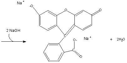 An dieser Stelle möchte ich näher auf das Phthalein Fluorescein (Resorcinphthalein, 2-(6-Hydroxy-3-oxo-3H-xanthen-9-yl)-benzoesäure) eingehen. Es ist in fester Form braunrot, in Wasser schwerlöslich. In alkalischer Lösung erscheint es beim Durchsehen gelbrot und zeigt ein intensive gelbgrüne Fluoreszenz.