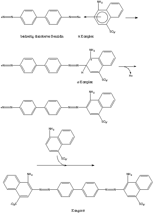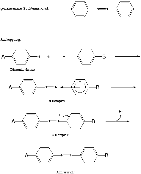 Das charakteristische an Azofarbstoffen ist, daß sie mindestens zwei, mit Doppelbindungen verbundene Stickstoffatome besitzen, die mit zwei Phenylresten verbunden sind. Sie verdanken ihre Substantivität dem langgestreckten Bau des Moleküls und der besonderen Verteilung der Ladung.