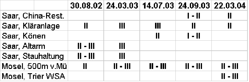 Jahreszeit wie bei der Mosel, Unterschiede von bis zu 4 Gewässergüteklassen